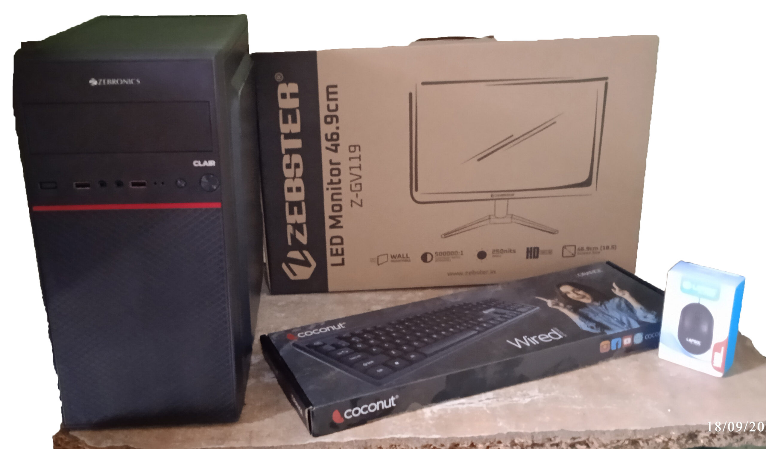 All new pc with Wired mouse Wired keyboard LED monitor 19′ inches CPU -Intel Core i3 processor -8 Gb RAM -256 SSD With box pack